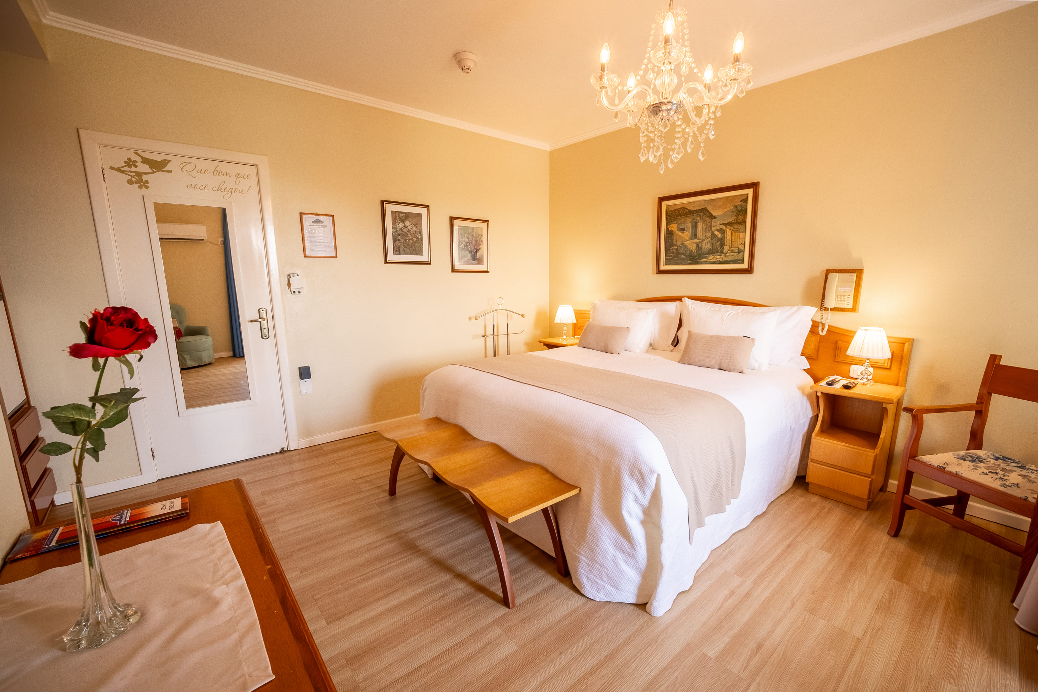 Os ambientes do hotel foram planejados e decorados pela artista plástica Olir de Menz, resultando em espaços ideais para quem busca conforto, tranquilidade e um descanso revigorante em meio à natureza.