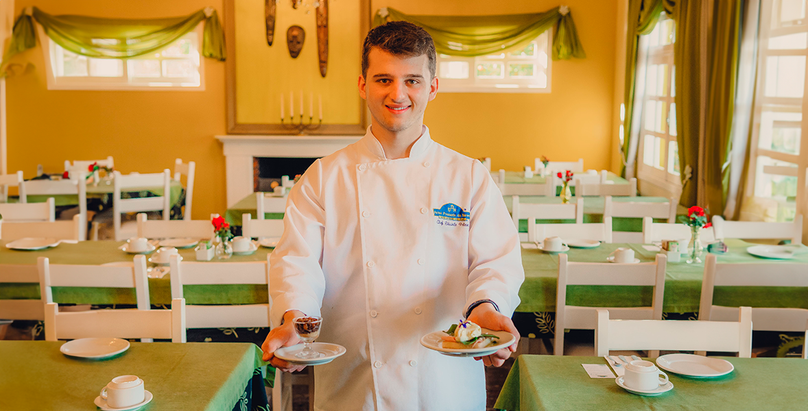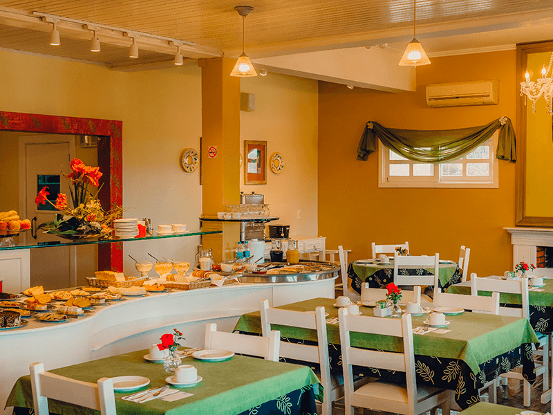 Além dos destaques do nosso café da manhã, que são os pratos da Sugestão do Chef, preparados na hora e que variam mensalmente, como ovo mollet empanado e eggs benedict, oferecemos um buffet repleto de pães, geleias, frios, frutas, salgados, bolos e tortas, assim como um tradicional café colonial da região. Todos os preparos, exceto padaria e fiambreria, são realizados pela nossa equipe. Não deixe de experimentar o clássico apfelstrudel, feito artesanalmente pela Dona Melânia, sócia-proprietária do hotel.